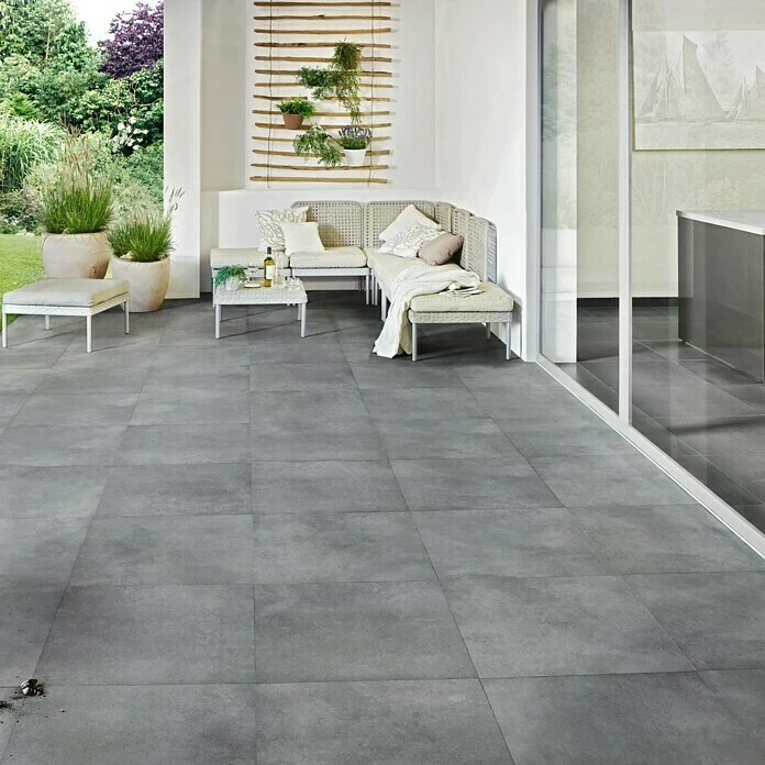 Ʌrt Ι Tec by Palazzo bietet die perfekte Lösung für den anspruchsvollen Geschmack. Die Möglichkeiten unterschiedliche Formate, Farben und Oberflächen im Innenbereich mit perfekt abgestimmten Terrassenplatten im Außenbereich zu kombinieren, verleiht Ästhetik pur. Art-Tec by PALAZZO vereint Widerstandfsähigkeit und Langlebigkeit mit hohem optischen Anspruch. Ob im privaten oder gewerblichen Umfeld – das durchgefärbte Feinsteinzeug ist dank neuester Oberflächentechnik extrem belastbar und einfach zu reinigen. Durch exakte Formate, maßgenaue Kanten und beste Verarbeitung wird auch die Verlegung der Fliesen zum Kinderspiel. Die keramischen Terrassenplatten sind aufgrund der Stärke von 2 cm äußerst robust und stabil und können auf jedem gängigen Untergrund verlegt werden. Ebenfalls erhältlich in den Farben Creme, Taupe, Steel, Onyx und Graphit.