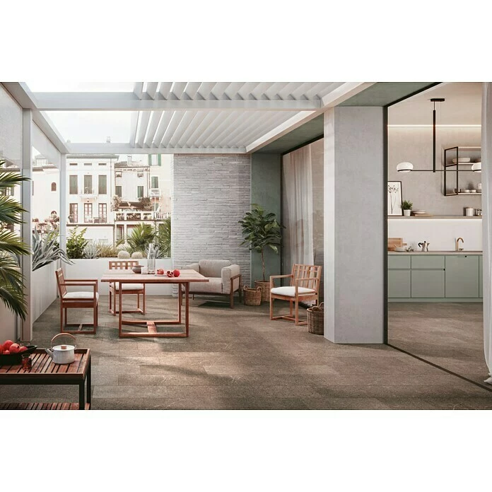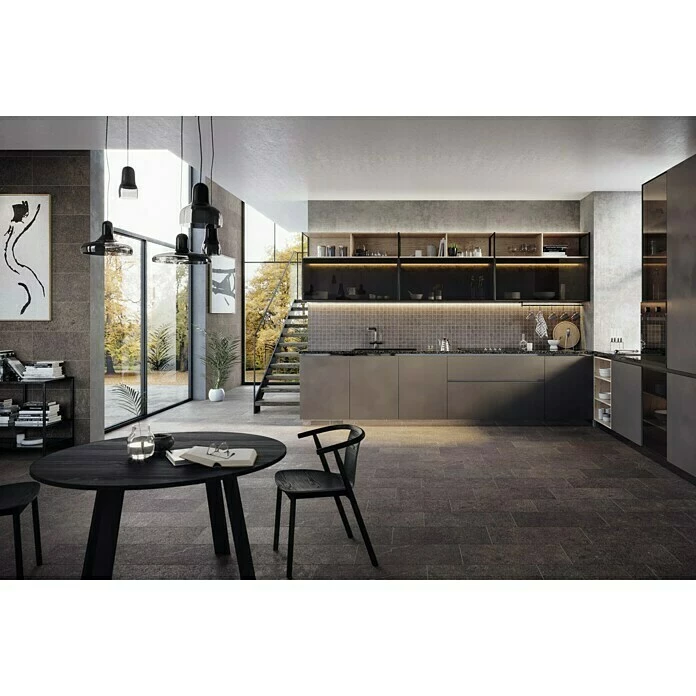Die durchgefärbte, strapazierfähige Feinsteinzeugfliese zeichnet sich durch ein hochmodernes Design aus und vermittelt gleichzeitig eine elegante Atmosphäre. Wir empfehlen eine Verlegung versetzt im Drittelverband. Des Weiteren eignet sich ihre Rutschsicherheit gut für den Außen- und Nassbereich.