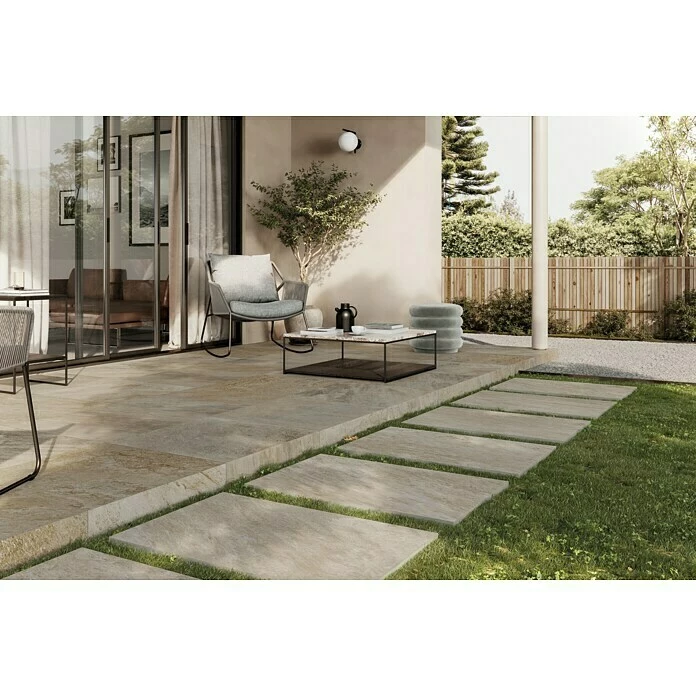 Die unglasierte Feinsteinzeugfliese Regent ist der ideale Allrounder für Terrasse, Balkon und Garten. Die Steinoptik in modernem Grau bringt Natürlichkeit in Ihren Outdoor-Bereich. Die rutschhemmenden Eigenschaften R11 machen sie zum perfekten Allrounder. Durch die rektifizierten Kanten ist die Fliese besonders maßgenau und mit einer schmalen Fuge verlegbar. Vielfältige Verlegearten, wie loses Verlegen auf Split, Gras, Kies oder auf Stelzlager sowie klassisches Verkleben lassen viele Gestaltungsspielräume.