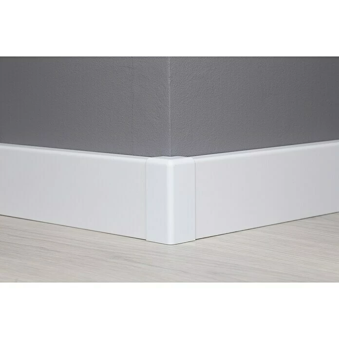 Diese Außenecke aus Kunststoff passt perfekt zu unserer Sockelleiste mit Dekorfolie im Farbton ähnlich RAL 9003. Sie ermöglicht eine schnelle Montage ohne aufwändige Gehrungsschnitte.