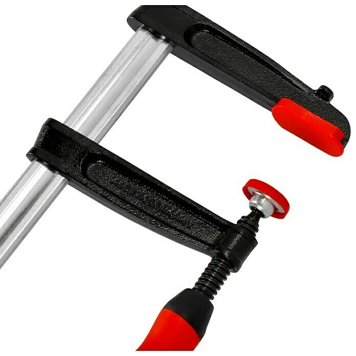 Die Tempergusszwinge von Bessey ist ideal für jeden Heim- und Handwerker. Sie überzeugt durch beste Qualität und gehört sowohl in jede Werkzeugkiste als auch in jede gut ausgestattete Werkstatt. Dieses universell einsetzbare Spannwerkzeug eignet sich hervorragend zum Halten von Werkstücken für eine Bearbeitung oder Verbindung mit weiteren Teilen. Der hochwertige 2-Komponenten-Kunststoffgriff sorgt für eine optimale Handhabung und sicheren Halt. Außerdem besitzt diese hochbelastbare Schraubzwinge eine stabile Hohlprofilschiene mit Riffelung als Verstärkung gegen Torsionskräfte. Die Druckplatten können zudem werkzeuglos ausgewechselt werden.
