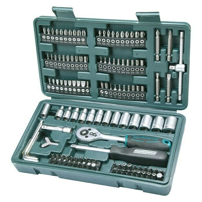 Der 130-teilige Steckschlüssel-Satz von Brüder Mannesmann aus der Green Line Serie ist der ideale Partner für vielfältige Schraubarbeiten am Auto, Motorrad, Fahrrad in und ums Haus.