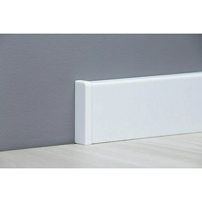 Diese Endkappen aus Kunststoff passen perfekt zu unserer Sockelleiste mit Dekorfolie im Farbton ähnlich RAL 9003. Sie bilden einen sauberen Abschluss und verhindern so den Blick auf die Stirnseite der Leiste.