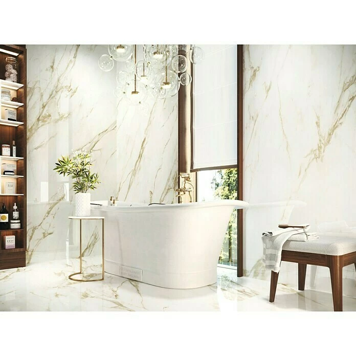 Die glasierte Feinsteinzeugfliese Adaggio ist ein besonders robuster und widerstandsfähiger Bodenbelag. Die einzigartige Marmorstruktur macht diese attraktive Bodenfliese zu einem Blickfang im großen Stil. Des Weiteren ist die Fliese, im Vergleich zu herkömmlichen Fliesen, aufgrund der Fliesenstärke von lediglich 7mm, wesentlich leichter. Die Oberfläche ist glasiert und somit ist eine zusätzliche Versiegelung oder Imprägnierung nach der Verlegung nicht notwendig.