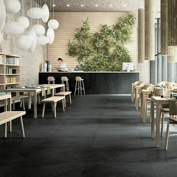 Die unglasierte Feinsteinzeugfliese Lavagna Nera erreicht Spitzenniveaus, dank der raffinierten Vielfalt der Details und Änderungen. Diese Eigenschaften werden durch das Großformat und die aufmerksam gestaltete Oberflächenstruktur zusätzlich betont. Durch die spezielle Oberflächenbearbeitung Ink-Jet wiederholt sich die Fliese nur sehr selten und bildet somit ein einzigartiges Gestaltungselement. Das Produkt ist unglasiert, eine zusätzliche Versiegelung oder Imprägnierung nach der Verlegung ist aufgrund der Oberflächenbehandlung jedoch nicht notwendig. Die rektifizierten Kanten ermöglichen eine besonders maßgenaue Verlegung mit schmalen Fugen und mit der hohen Rutschsicherheitsgruppe R 10 ist die Bodenfliese auch ideal für den Außenbereich geeignet. Wir empfehlen eine Verlegung versetzt im 1/3-Verband.