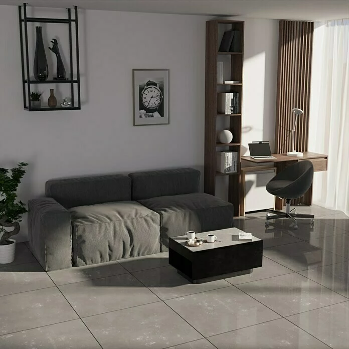 Die teilpolierte Feinsteinzeugfliese One verleiht mit ihrer modernen, glänzenden Betonoptik jedem Raum eine urbane Eleganz. Sie ist sowohl als Boden- als auch als Wandfliese im Innen- und Außenbereich einsetzbar. Ihre Abmessungen wirken dabei sehr edel und optisch raumvergrößernd. Dank rektifizierter Kanten ist die Fliese besonders maßgenau, was eine Verlegung mit extrem schmalen Fugen möglich macht.