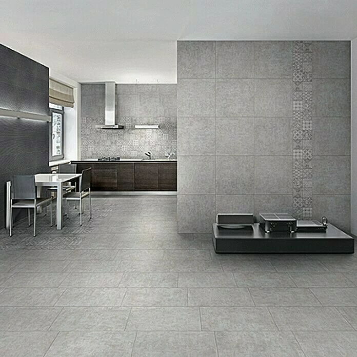 Die Feinsteinzeugfliese Twin anthrazit ist im gesamten Wohnbereich einsetzbar. Die Kombination zwischen dem modernen Effekt aus Zementoptik und dem zeitlosen Stil der alten Tradition der Mixdekoration verleiht eine elegante Atmosphäre. Das Produkt dient somit nicht nur der Funktionalität, sondern bildet zusammen mit der passenden Dekorfliese ein einzigartiges Gestaltungselement. Durch das spezielle Herstellungsverfahren wiederholt sich das Oberflächendesign nur selten. Wir empfehlen eine Verlegung versetzt im 1/3-Verband.