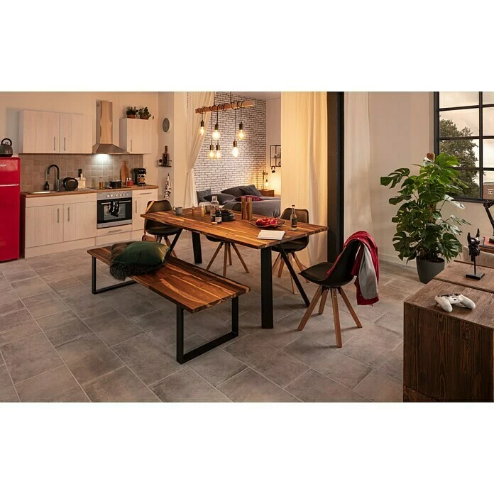 Die Feinsteinzeugfliese Urban Beton ist im gesamten Wohnbereich einsetzbar. Sie vermittelt eine elegante Atmosphäre und ist robust und pflegeleicht. Durch das spezielle Herstellungsverfahren wiederholt sich das Oberflächendesign nur selten. Das Produkt ist besonders rutschsicher und somit gut für den Außen- und Nassbereich geeignet. Wir empfehlen eine Verlegung versetzt im 1/3-Verband.