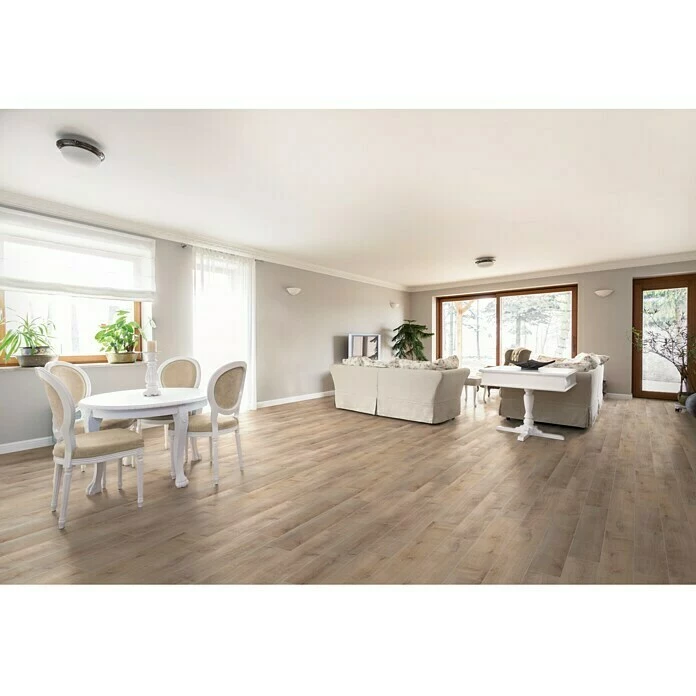 Die glasierte Feinsteinzeugfliese West Oak lässt sich neben dem traditionellen, rustikalen Ambiente auch in Räumen mit puristischem Design integrieren. Die Produktion erfolgt in Digitaltechnik mit unterschiedlichen Serigraphien, so dass eine natürliche – wie gewachsene – Holzoptik entsteht. Der durchgefärbte Scherben verstärkt die Hochwertigkeit des Produktes zusätzlich. Die Feinsteinzeugfliese ist besonders rutschsicher und somit gut für den Außen- und Nassbereich geeignet. Wir empfehlen eine Verlegung versetzt im 1/3-Verband.