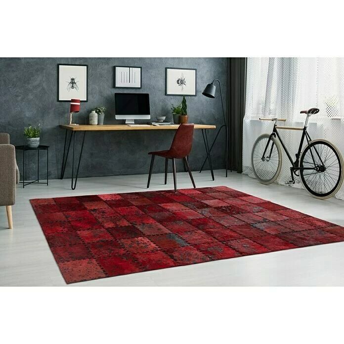Der Kayoom Echtlederteppich Viola überzeugt in designstarkem Patchwork-Muster. Dieser luxoriöse Naturteppich aus echtem Fell setzt wahre Akzente. Die intensive Färbung des Fells und die natürlichen ledernen Bereiche ergeben ein harmonisches Gesamtbild, welches sich in jedem Raum sehen lassen kann. Die einzelnen quadratischen Lederstücke wurden in Handarbeit zu einem großen Ganzen zusammengefügt und bilden ein stimmiges Gesamtmotiv. Durch das spezielle Muster und die intensive Farbe erhält der Teppich seinen besonderen Charakter. Auch in viel genutzten Räumen ist dieser Echtlederteppich ein idealer Bodenbelag, denn das Obermaterial des flachen und dünnen Flors ist sehr robust und zudem pflegeleicht. Leichte Verschmutzungen lassen sich einfach ausschütteln, absaugen oder sanft abbürsten, wohingegen grobe Verschmutzungen mit einem feuchten Tuch gut beseitigt werden können. Ein Filzrücken verstärkt die Wärmeeigenschaften des Naturmaterials und schont zugleich den Untergrund. Durch das natürliche Leder und die Handarbeit ist jeder Teppich ein Einzelstück. Form, Farbe und Muster können um bis zu 30 % von dem dargestellten Muster abweichen. Mit der Zeit und bei hoher Beanspruchung kann der Teppich gegebenenfalls an Haaren verlieren. Dies liegt an der natürlichen Materialbeschaffenheit und ist weder ein Qualitätsmangel noch ein Produktionsfehler.