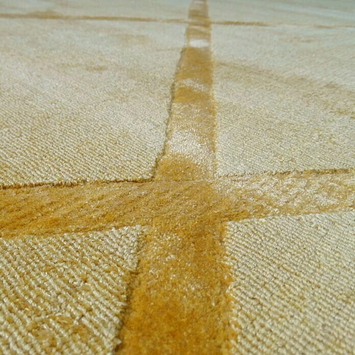 Der Kayoom Kurzflorteppich Luxury löst bei seinem Betrachter sofort ein behagliches Gefühl aus. Die harmonisch abgestimmten Töne in Gelb und der melierte Look des Teppichs verleihen jedem Raum ein besonderes Retro-Feeling. Der moderne Design-Teppich ist handgefertigt in stilsicherem Rauten-Design. Die gekonnt gesetzten Fasern machen ihn zu einem Wohnaccessoire, das alle Blicke auf sich zieht. Die eleganten Strukturen und die intensive Farbbrillanz gestalten den Vorleger in Summe zu einem hochattraktiven Teppich, der sich traumhaft sowohl in die moderne als auch klassische Wohnumgebung einfügt. Ein kunstvolles Teppichwunder, das auf den Boden gehört – erschaffen durch die Hand einer wahren Koryphäe seines Gebietes. Der elegante Teppich zeichnet sich durch seine besondere Ausstrahlung aus. Der Designerteppich ist ein Kurzflorteppich und hat einen Baumwollrücken. Er ist einfach zu reinigen und zugleich fusselarm, sodass er auch ideal für Allergiker geeignet ist. Der dichte Flor und die verarbeitete Spezialfaser schützen die Farben vor Verblassung. Der designstarke Teppich steckt voller Esprit und verlockt zu Inspiration. Dabei steht der Komfort stets im Vordergrund. Er ist für jegliche Bodenart tauglich und ist zudem für Böden mit Fußbodenheizung geeignet.