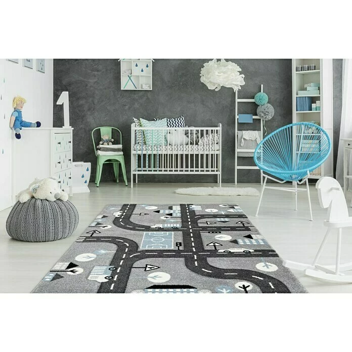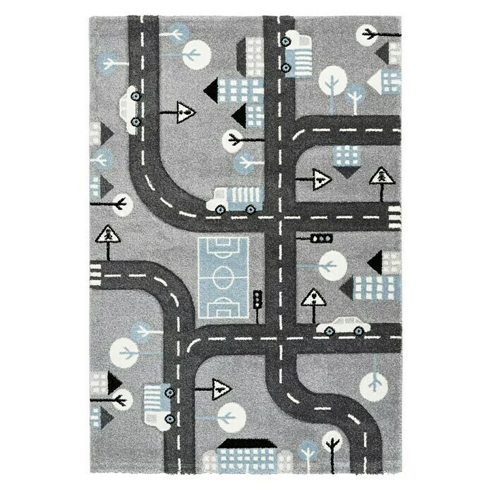 Der Kayoom Kurzflorteppich Straßenverkehr ist ein Kinderzimmerteppich mit tollem Design. Dieser attraktive Spielteppich ist optimal für das Kinderzimmer von heute geeignet. Das verspielte, kindgerechte Motiv und die dezenten Farben eignen sich ideal als Spieluntergrund und lassen Kinderaugen strahlen. Er bietet einen weichen Grundfläche, auf dem Kinder sichtbare Freude haben werden. Ein großer Vorteil ist auch das pflegeleichte Material und die robuste Qualität dieses Kinderteppichs. Gerade im Kinderzimmer sind diese Eigenschaften empfehlenswert. Er hält hoher Beanspruchung und Verschmutzungen stand, sodass Kinder lange Zeit Freude an dem neuen Bodenbelag haben.