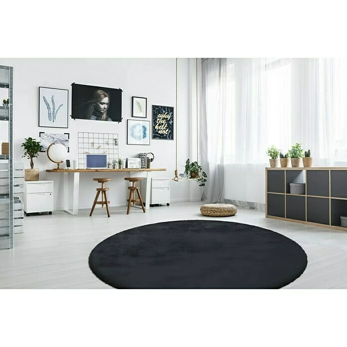 Der Kayoom Teppich rund Rabbit ist ein besonders weicher Hochflor-Kuschelteppich, der eine ganz persönliche Wohlfühlzone erschafft. Die softe Oberfläche sorgt für angenehmen und barfußfreundlichen Komfort und fühlt sich an wie echtes Kaninchenfell. Der moderne Look passt zu modernen und klassischen Möbeln und kann in jeden Einrichtungsstil integriert werden. Als Ergänzung der Wohnlandschaft oder als gemütlichen Bodenbelag vor den Kamin: dieses Teppichmodell findet vielseitige Einsatzmöglichkeiten. Ein Rücken aus Baumwolle verstärkt die Stabilität des Teppichs. Auch auf Böden mit Fußbodenheizung kann der komfortabel weiche Hochflorteppich problemlos ausgelegt werden.