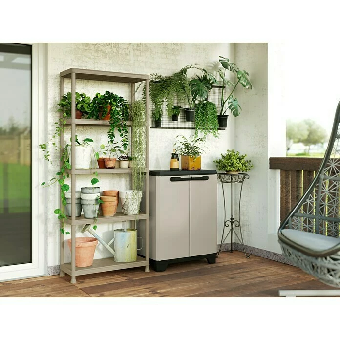 Das Kunststoffregal Planet von Keter besteht zu 80 % aus Recyclingkunststoff und bietet dank seiner 5 Böden genügend Platz zur Aufbewahrung unterschiedlichster Gegenstände. Durch die einfache Steckmontage lässt sich das Regal ohne Werkzeugeinsatz problemlos zusammenbauen. Mit einer Traglast von 25 kg pro Boden zeichnet sich das Regal zudem durch seine hohe Stabilität aus.