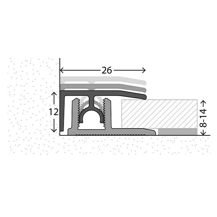 Das LOGOCLIC Abschlussprofil ist für Bodenbelagstärken von 8 – 14 mm konstruiert. Verdeckt befestigt bietet es eine perfekte Optik ohne Schraublöcher. Die flache Oberfläche ohne Zierrillen sorgt für zeitlose Eleganz. Die Montage ist besonders schnell und einfach. Zunächst wird das Basisprofil mit Montage- oder einem Zwei-Komponenten-Kleber auf dem Untergrund verklebt. Alternativ kann das Basisprofil auch verschraubt werden. Mit dem bogenverzahnten Gelenksteg rastet das Oberprofil im Basisprofil ein und passt sich automatisch dem Bodenbelag an – variabel in Höhe und Neigung. Auch bei stärkeren Niveauunterschieden liegt das Profil an beiden Seiten dicht an. Gleichzeitig erlaubt die Bogenverzahnung die problemlose Demontage. Das Oberprofil kann bei Bedarf gelöst und anschließend wieder im Basisprofil verankert werden. Die Profile wurden vom deutschen TÜV auf eine Punktbelastbarkeit von 1,5 Tonnen getestet. Hinweis: Passender Klebstoff oder Montagematerial ist separat zu erwerben.