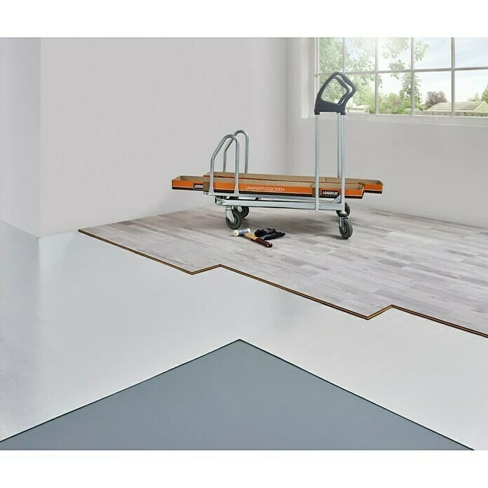 Vor dem Verlegen ist sicherzustellen, dass der Unterboden normgerecht vorbereitet ist, insbesondere eben, sauber, trocken, rissfrei, zug- und druckfest. Das Verwenden einer zusätzlichen Dampfsperre ist aufgrund der oberseitig aufkaschierten Folie nicht notwendig. Die Pro Acoustic+ Unterlage wird mit der aluminisierten Folienseite nach oben auf dem Boden ausgerollt.