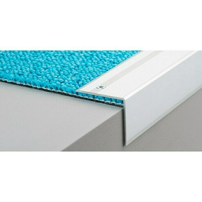 Das LOGOCLIC Treppenkantenprofil schützt zuverlässig die Kanten des Bodenbelags auf der Stufenkante. Versenkte Schraublöcher ermöglichen eine dauerhafte Befestigung des Winkelprofils. Die gerillte Oberfläche erhöht zusätzlich die Sicherheit auf der Trittfläche.
