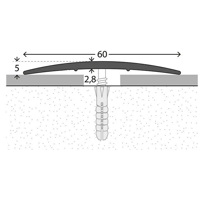 Das LOGOCLIC Übergangsprofil eignet sich perfekt zum Überdecken der Nahtstellen zwischen nahezu beliebigen, gleich hohen Bodenbelägen. Seinen Anwendungsbereich findet das extrabreite Aluminiumprofil beispielsweise an Türübergängen. Die mittig versenkt gebohrten Schraublöcher ermöglichen eine unkomplizierte Befestigung.