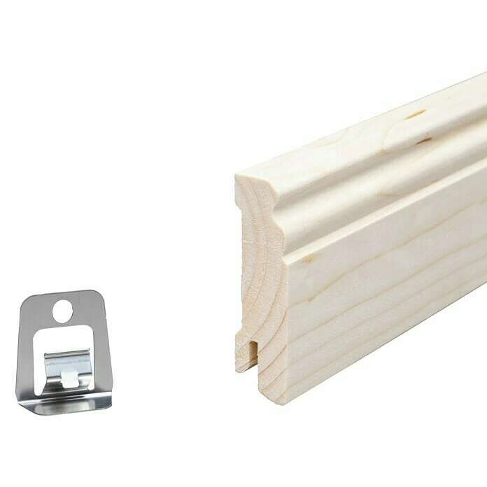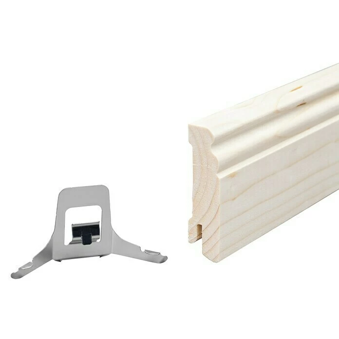 Diese klassische Sockelleiste aus robustem Massivholz ist aus nordischer Fichte gefertigt und erfreut das Auge mit ihrer natürlichen Holzoptik im beliebten altdeutschen Profil. Dieses trifft vor allem den Geschmack aller, die es traditioneller mögen oder im Altbau wohnen, ist aber ebenso dezent genug, um zu verschiedensten Einrichtungsstilen zu passen. Die Montage der Sockelleiste wird durch das ExPressclip-System erleichtert.