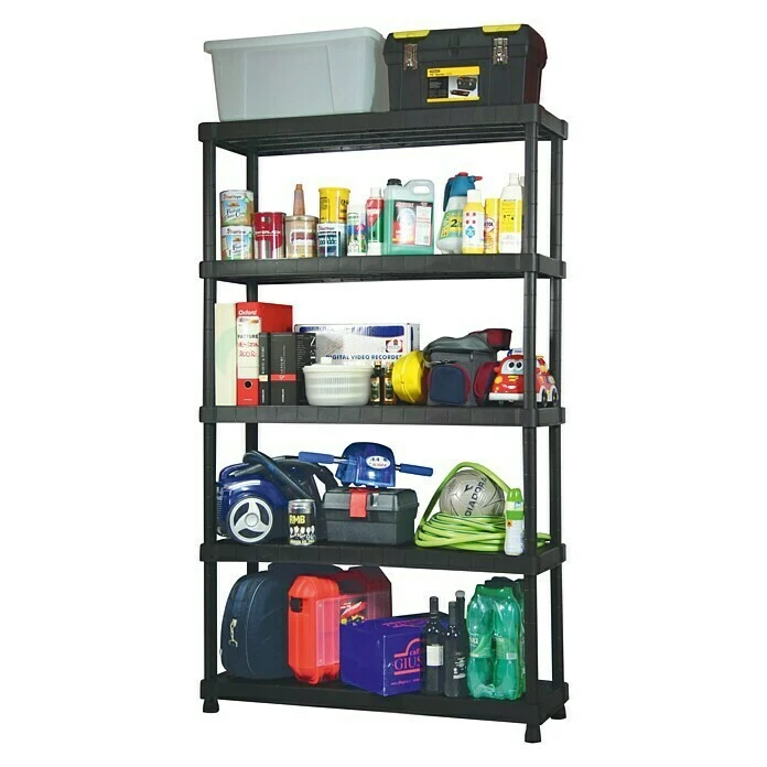 Das zuverlässige Regalux Kunststoffregal XL ist extra breit und bietet dank seiner 5 Böden genügend Platz zur Aufbewahrung vieler Gegenstände. Durch die einfache Steckmontage lässt sich das Regal ohne Werkzeugeinsatz problemlos zusammenbauen. Mit einer Traglast von 70 kg pro Boden zeichnet sich das Regal zudem durch seine hohe Stabilität aus. Das Kunststoffregal kann auch in Feuchträumen aufgestellt werden. Im Lieferumfang sind Verbindungsstücke und Wandhalter enthalten.