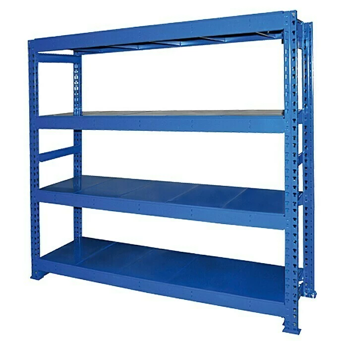Das Grundregal Jumbo von Regalux ist mit einer Traglast von 600 kg pro Boden das ideale Regal für Keller, Garage und Werkstatt. Ausgestattet mit insgesamt 4 Böden bietet es als Schwerlastregal viel Stauraum für extrem schwere und sperrige Gegenstände. Die hochwertige Verarbeitung, Standsicherheit und Stabilität sorgen für eine lange Lebensdauer und die nötige Sicherheit. Gleichzeitig ist es dank des praktischen Stecksystems schnell und einfach, ganz ohne Werkzeug, montiert. Somit bietet das Grundregal Jumbo von Regalux professionellen Stauraum auf hohem Niveau und lässt sich bei Bedarf problemlos durch das Anbauteil Jumbo erweitern.