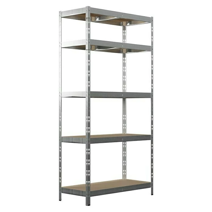 Das Steckregal verfügt über 5 Böden, die bei gleichmäßiger Gewichtsverteilung jeweils mit bis zu 175 kg belastbar sind. Die hochwertige Qualität und eine hohe Stabilität sorgen für eine lange Lebensdauer und Sicherheit. Somit bietet das Schwerlastregal von Regalux professionellen Stauraum auf hohem Niveau.