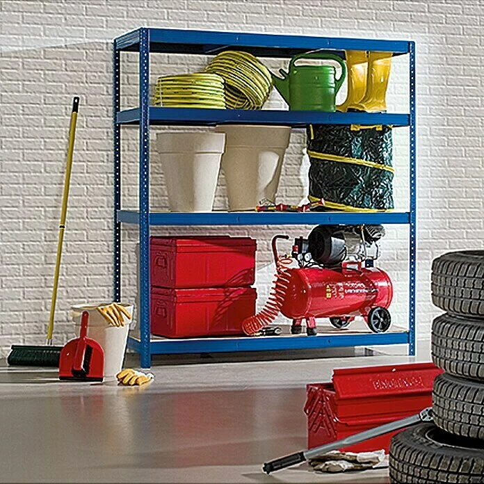Das Schwerlastregal XXL von Regalux ist mit einer Traglast von 350 kg pro Boden das ideale Regal für Keller, Garage und Werkstatt. Ausgestattet mit insgesamt 4 Böden bietet es als Schwerlastregal viel Stauraum für schwere und sperrige Gegenstände. Die hochwertige Verarbeitung, Standsicherheit und Stabilität sorgen für eine lange Lebensdauer und die nötige Sicherheit. Gleichzeitig ist es dank des praktischen Stecksystems schnell und einfach, ganz ohne Werkzeug, montiert. Somit bietet das Schwerlastregal von Regalux professionellen Stauraum auf hohem Niveau.