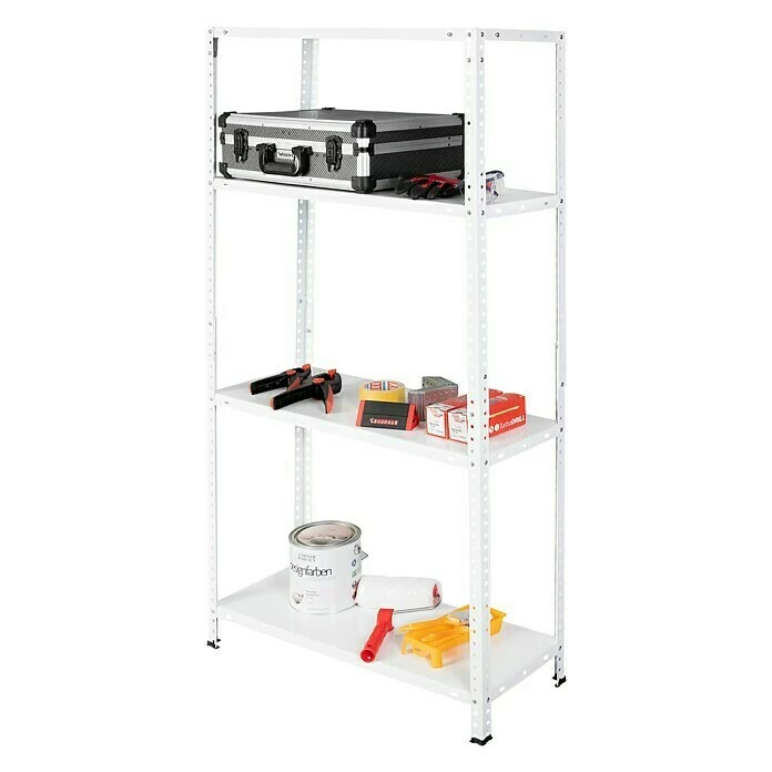 Das Metallregal von Regalux ist ein Schraubregal für Keller, Werkstatt oder Garage. Es verfügt über 4 Metallfachböden die mit den im Lieferumfang enthaltenen Schrauben montiert werden und mit jeweils 50 kg belastet werden können. Die starre Konstruktion sorgt für eine hohe Stabilität und Standsicherheit die durch einen Befestigung an der Wand noch verstärkt wird.
