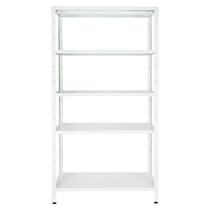 Das Regalux Steckregal bietet Stauraum auf fünf Böden mit einer jeweiligen Traglast von 65 kg. Der Aufbau ist dank des Stecksystems einfach und problemlos. Durch die weiß lackierte Oberfläche ist das Regal vor Rost geschützt. Das Befestigen an einer Wandfläche ist mit Hilfe des mitgelieferten Montagematerials optional möglich und sorgt für zusätzliche Stabilität.