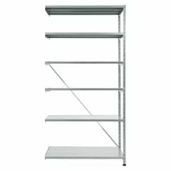 Das Lagerregal von Scholz ist ein Anbaufeld und nur in Verbindung mit einem Grundfeld montierbar. Es ist Teil eines umfangreichen Regalsystems welches ideal für all jene geeignet ist, die ein flexibles Regalsystem benötigen das sich vielseitig und leicht in die vorhandenen Räumlichkeiten einpassen und erweitern lässt. Der Aufbau ist dank des Stecksystems einfach und problemlos durchzuführen. Das Regal verfügt über 6 Fachböden mit einer jeweiligen Traglast von 100 kg sowie über abgerundete Kanten und Ecken was der Gefahr von Verletzungen vorbeugt. Durch die verzinkte Oberfläche ist es vor Rost und Witterungseinflüssen geschützt. Das System Komplettregal lässt sich bei Bedarf durch Anbaufelder beliebig erweitern und sorgt somit für größtmögliche Flexibilität. Die umfangreiche Auswahl dieses Systems an Regalen, Grundelementen, Anbauelementen und Zubehör entnehmen Sie bitte der angehängten Produktübersicht.