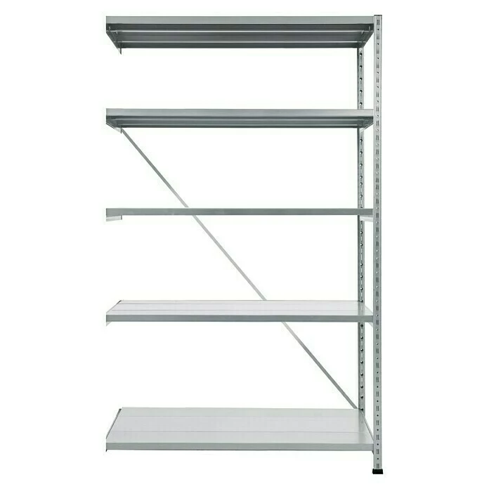 Das Lagerregal von Scholz ist ein Anbaufeld und nur in Verbindung mit einem Grundfeld montierbar. Es ist Teil eines umfangreichen Regalsystems welches ideal für all jene geeignet ist, die ein flexibles Regalsystem benötigen das sich vielseitig und leicht in die vorhandenen Räumlichkeiten einpassen und erweitern lässt. Der Aufbau ist dank des Stecksystems einfach und problemlos durchzuführen. Das Regal verfügt über 5 Fachböden mit einer jeweiligen Traglast von 270 kg sowie über abgerundete Kanten und Ecken was der Gefahr von Verletzungen vorbeugt. Durch die verzinkte Oberfläche ist es vor Rost und Witterungseinflüssen geschützt. Das System Komplettregal lässt sich bei Bedarf durch Anbaufelder beliebig erweitern und sorgt somit für größtmögliche Flexibilität. Die umfangreiche Auswahl dieses Systems an Regalen, Grundelementen, Anbauelementen und Zubehör entnehmen Sie bitte der angehängten Produktübersicht.