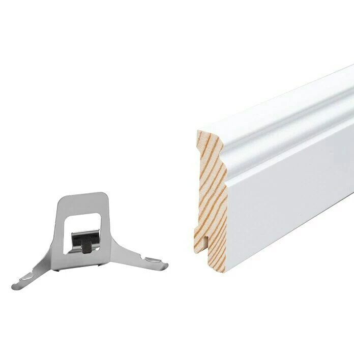 Diese Premium-Sockelleiste mit altdeutschem Profil besteht aus keilgezinktem weiß lackierten Kiefernholz. Ein Traum für die stilvolle Altbaurenovierung oder den anspruchsvollen Innenausbau. Neben ihrer eleganten, klassischen Form überzeugt sie durch ihre Massivholz-Qualität mit höchster Beständigkeit und Langlebigkeit. Auch verfügt sie über eine Clip-Nut und ist damit leicht und schnell zu befestigen.