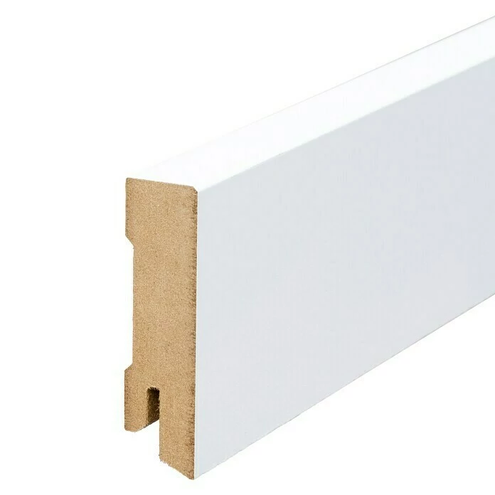 Diese weiße Sockelleiste ist aus äußerst robustem MDF gefertigt. Das gefaste Profil fügt sich nahtlos in zeitgemäße Wohnkonzepte ein. Mit seiner kantigen Optik trifft es den Geschmack aller, die Wert auf eine schnörkellose Gestaltung legen. Durch ihre Clip-Nut ist sie besonders montagefreundlich.