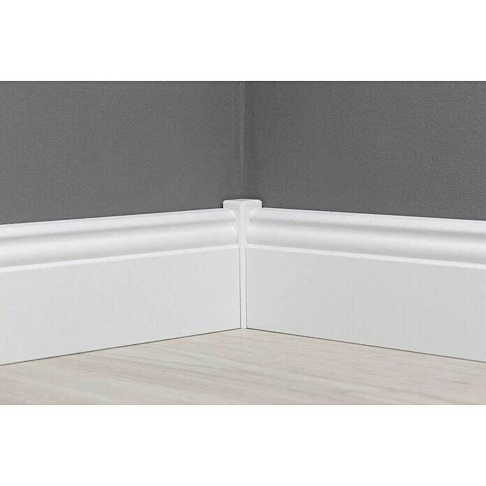Diese weiß grundierte Sockelleiste mit altdeutschem Profil ist aus äußerst robustem MDF gefertigt. Sie bietet variable Gestaltungsmöglichkeiten durch eine weitere Veredelung mit weißen oder farbigen Lacken – je nachdem, ob auch Farbe ins Spiel kommen darf. Mit ihrer klassischen Form veredelt sie den Übergang zwischen Boden und Wand und verleiht diesem besonders in Altbauten einen stilechten Charakter. Darüber hinaus passt sie zu einer Vielzahl von Einrichtungsstilen. Durch ihre Clip-Nut ist sie besonders montagefreundlich.