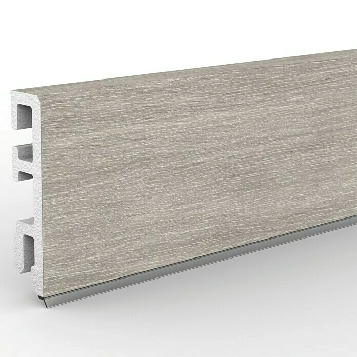 Die Sockelleiste Cubica 60 besteht aus einem geschäumten Polyblend auf PVC-Basis. Die integrierte Weichlippe bietet einen sauberen Abschluss zum Bodenbelag und schützt vor dem Eindringen von Feuchtigkeit. Für den Zuschnitt empfiehlt sich eine handelsübliche Hand- oder Kapp-und Gehrungssäge mit feinem Sägeblatt. Mit der Kunststoffsockelleiste schaffen Sie einen perfekten Übergang für alle Bodenbelagsarten.
