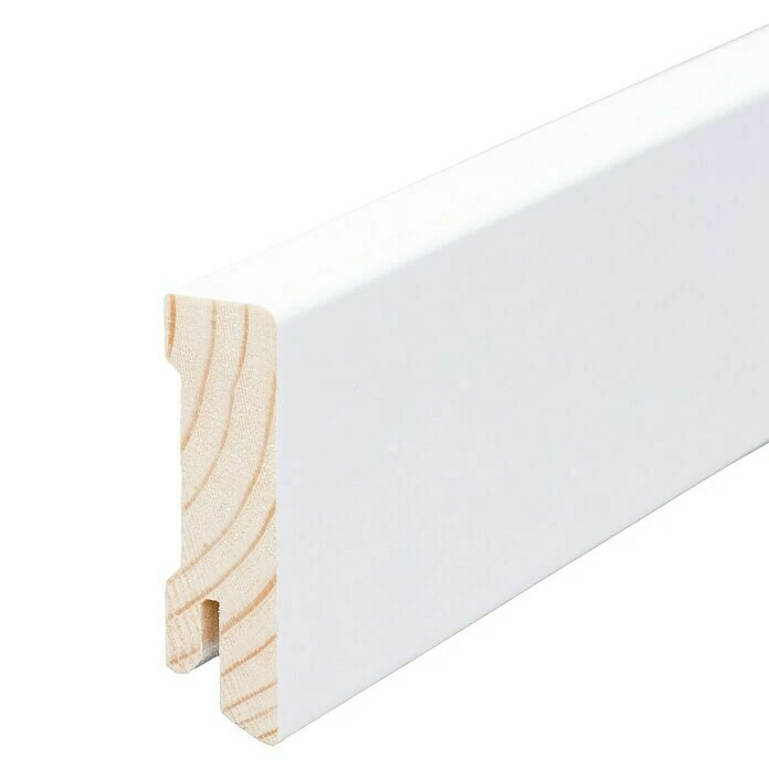 Diese Sockelleiste aus keilgezinktem, weiß lackiertem Kiefernholz ist Premiumqualität gefertigt. Ihre Wertigkeit sieht man ihr bereits auf den ersten Blick an. Durch ihr massives Holz ist sie zudem besonders robust und langlebig. Das kubische Profil erfüllt alle Ansprüche des modernen Wohndesigns und fügt sich stilvoll in jede Raumgestaltung ein. Durch die Clip-Nut der Sockelleiste ist sie obendrein im Handumdrehen montiert.