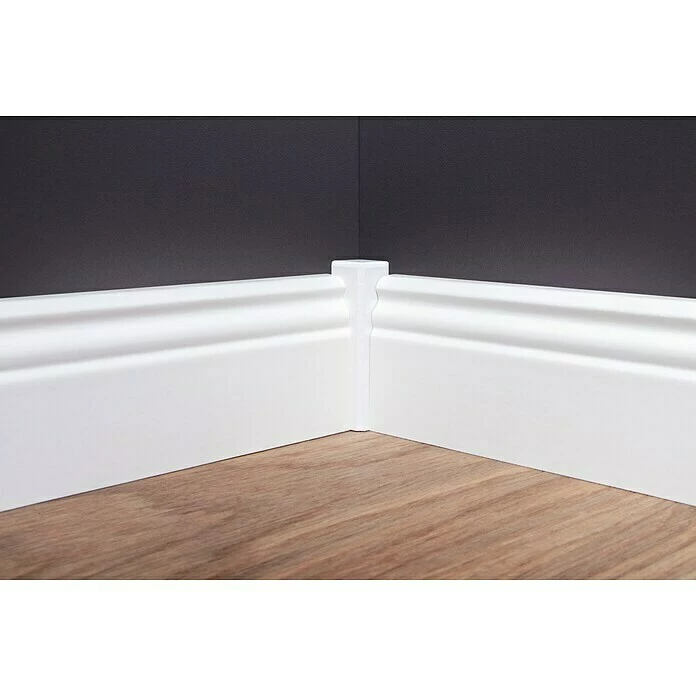Die Sockelleiste aus einem hochwertigen Fichtenholzkern ist von einer Starkfolie in klarem, reinem Weiß ummantelt. Das Ergebnis ist eine besonders robuste und langlebige Leiste. Mit ihrem altdeutschen Profil ist sie ein Traum für die stilvolle Altbaurenovierung oder den anspruchsvollen Innenausbau. Einen praktischen Vorteil bietet die Clip-Nut der Sockelleiste. Damit ist eine einfache und verdeckte Montage möglich.
