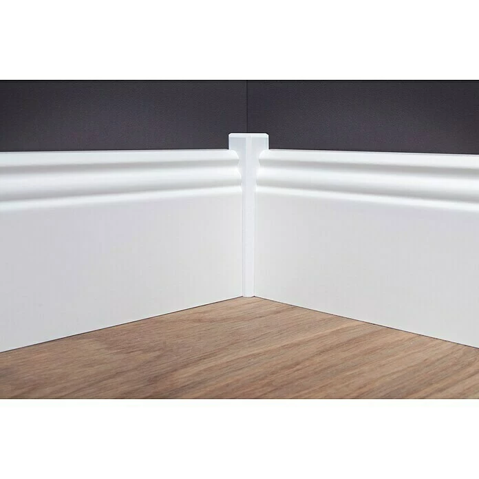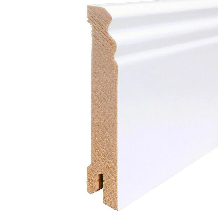 Die Sockelleiste aus einem hochwertigen Fichtenholzkern ist von einer Starkfolie in klarem, reinem Weiß ummantelt. Das Ergebnis ist eine besonders robuste und langlebige Leiste. Mit ihrem altdeutschen Profil ist sie ein Traum für die stilvolle Altbaurenovierung oder den anspruchsvollen Innenausbau. Einen praktischen Vorteil bietet die Clip-Nut der Sockelleiste. Damit ist eine einfache und verdeckte Montage möglich.