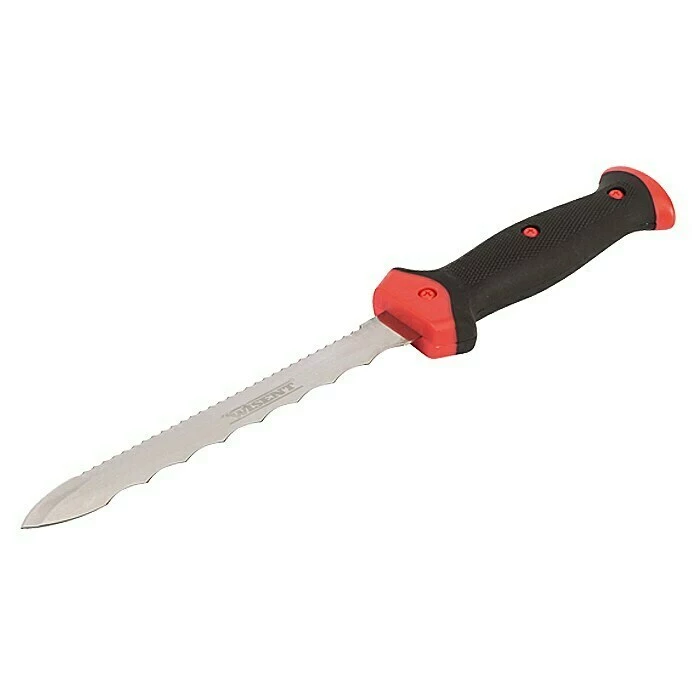 Das Dämmstoffmesser DS 360 von Wisent ist mit einer hochwertigen Klinge aus Stahl versehen. Die eine Seite der Klinge ist mit einem gewellten Schliff versehen, der das Schneiden von Glas- und Steinwolle ermöglicht. Für härtere und festere Materialien wie Polystyrol oder andere Dämmstoffplatten verfügt die andere Seite der Klinge über eine spitze Verzahnung. So wird das Trennen von verschiedenen Materialien schnell und einfach erledigt. Dank des ergonomischen Griffs liegt das Dämmstoffmesser auch bei längeren Arbeiten hervorragend in der Hand.
