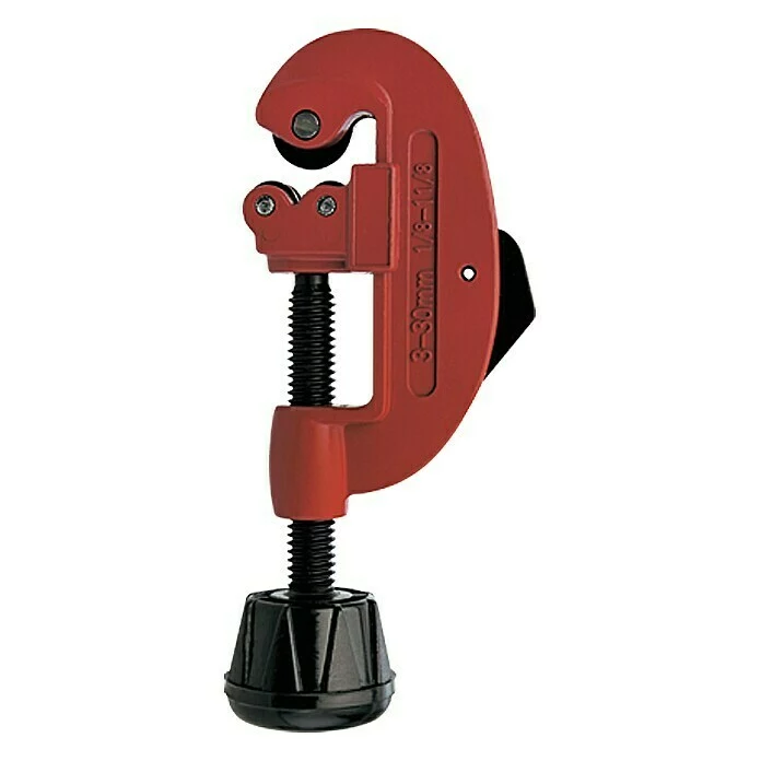 Mit dem Wisent Rohrabschneider können Sie Kupferrohre sauber schneiden. Mit dem Entgrater an der Rückseite lässt sich im Anschluss das Rohr sicher weiterverarbeiten. Zusätzlich ist auch gleich ein Ersatzschneidrad im Drehgriff mit untergebracht.