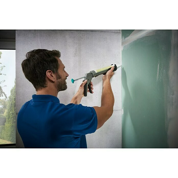 Die Wolfcraft Kartuschenpresse MG211 passend für alle 310 ml Kartuschen (Ø 50 x 225 mm) eignet sich hervorragen zum verarbeiten von Silikon und Acryl. Dazu ist sie mit einer Tropf-Stop-Funktion ausgestattet. Diese verhindert das Nachlaufen von Material und somit auch die Entstehung von unschönen Resten auf Oberflächen. Die ergonomische Griffgestaltung, sowie der leichte Kartuschenwechsel ermöglichen ein entspanntes Arbeiten.